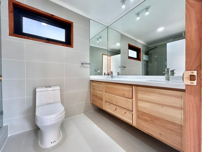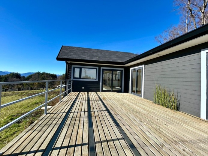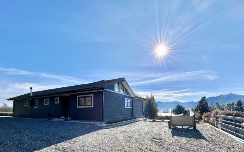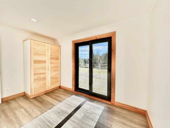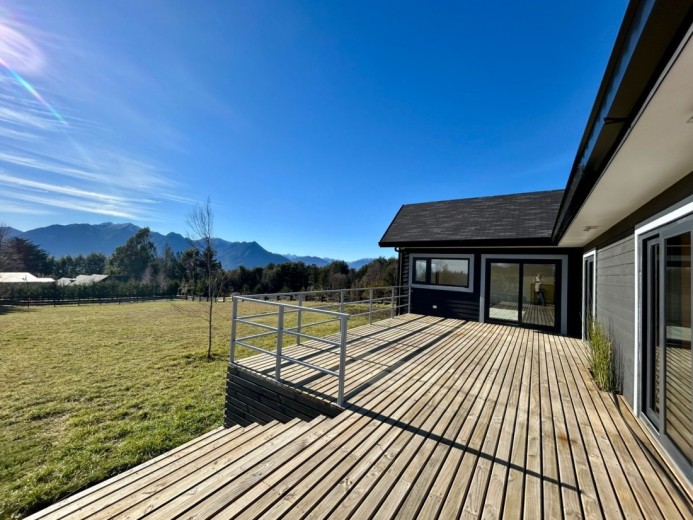 Luminosa y acogedora casa ubicada en un exclusivo condominio en un entorno natural único a tan solo cinco minutos del centro de Pucón. Esta propiedad, recién terminada y lista para habitar es ideal tanto para vivir como para disfrutar en temporadas de descanso. Ubicada en el kilómetro 1 del Camino Candelaria, con excelentes accesos y cercana al Parque Nacional Villarrica, esta propiedad se encuentra en un conjunto de solo 30 terrenos que destacan por su tranquilidad, seguridad y alta proyección de valorización. El condominio cuenta con acceso automatizado, y todos los servicios – electricidad, agua potable y fibra óptica – están instalados en forma soterrada para preservar la armonía del paisaje natural. La casa se alza sobre un terreno de pradera muy soleado durante todo el año, con vistas abiertas hacia las montañas de Quelhue y el sector noroeste del lago Villarrica. Cuenta con hall, living y comedor integrados con vigas a la vista de madera Oregón y grandes ventanales con marcos del mismo material, gran terraza de 70 m2, además de una cómoda logia/bodega contigua. El dormitorio principal es en suite, con amplios closets y salida directa a la terraza. Los otros dos dormitorios comparten un baño completo y un baño de visitas. El sistema de calefacción incluye estufa a pellet ya instalada. Toda la construcción se levanta sobre radier, con revestimientos exteriores en siding con aislación térmica, techo de teja asfáltica, y piso vinílico de alta resistencia. El acceso a la propiedad cuenta con portón eléctrico y un estacionamiento amplio de gravilla con una hermosa pirca de piedra. El jardín ya se encuentra formado y cuenta con caseta exterior y conexión para dos balones de gas de 45 litros.