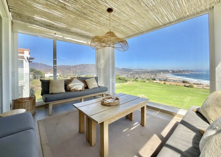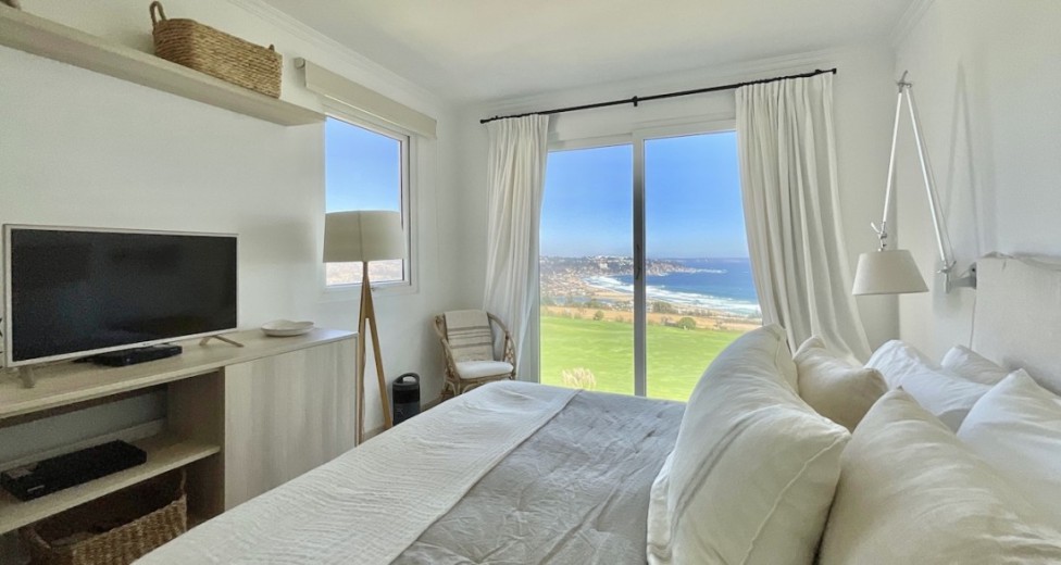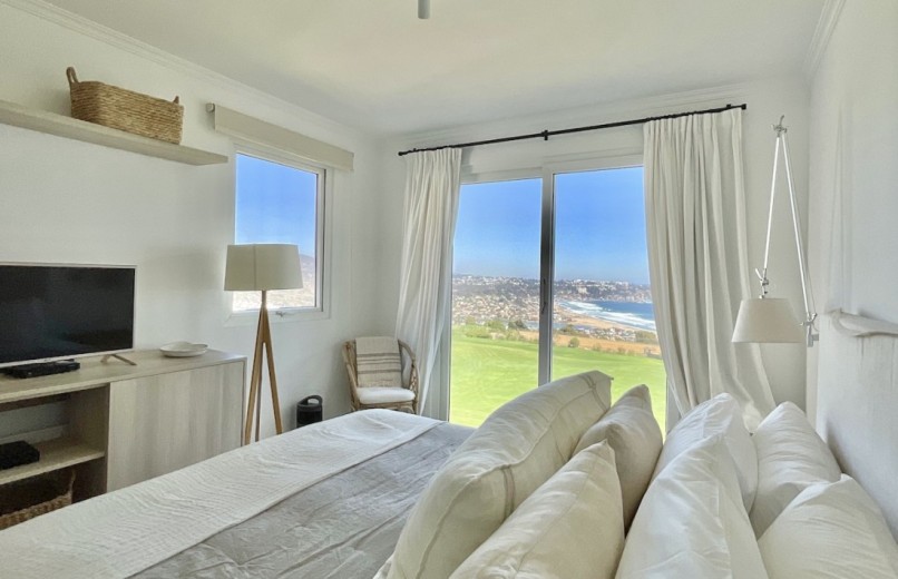 En el encontrarás un lindo hall de acceso, living comedor con acceso a una espectacular terraza cerrada con impresionante vistas al poniente: cancha de golf, playa, mar y un gran cielo abierto. Junto al comedor está la cocina semi integrada, prácticamente nueva y con logia integrada. Desde el hall accedes a un cómodo pasillo de distribución, donde está el baño de visitas, dos dormitorios (uno en suite) y el dormitorios principal, también en suite y con hermosas vistas, también muy cálido y luminoso. El departamento cuenta con dos estacionamientos y una bodega, todo en Costa Cachagua, condominio con una de las mejores administraciones de la Comuna de Zapallar, con acceso directo a playa norte de Maitencillo - con restaurante frente al mar, tumbonas, quitasoles y en temporada alta con salvavidas - además de control de acceso las 24 horas, cámaras de seguridad, club house con piscina, restaurante y gimnasio, canchas de tenis, paddle, fútbol y golf, y una linda granja para niños.
