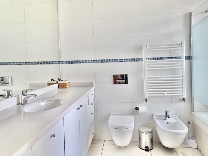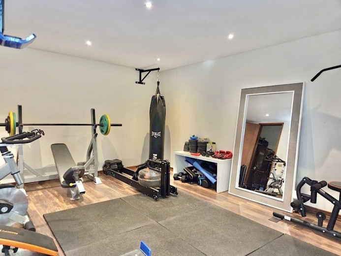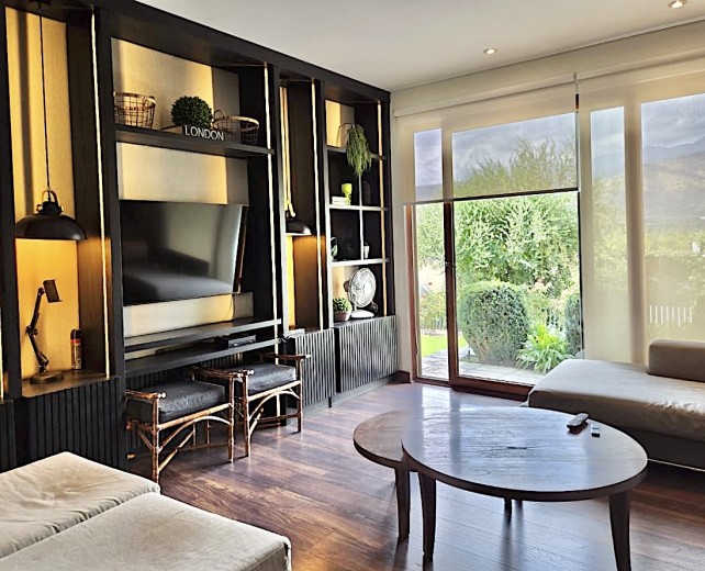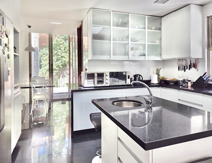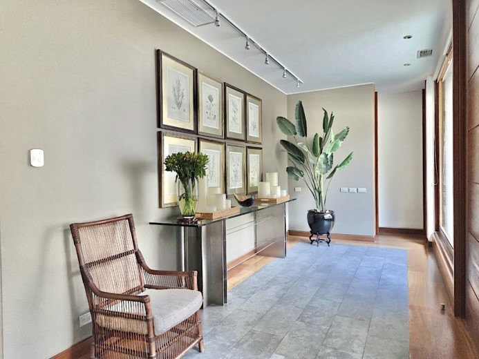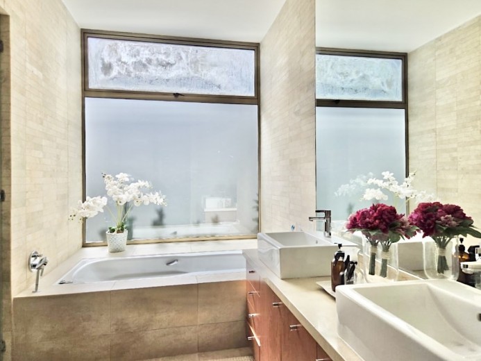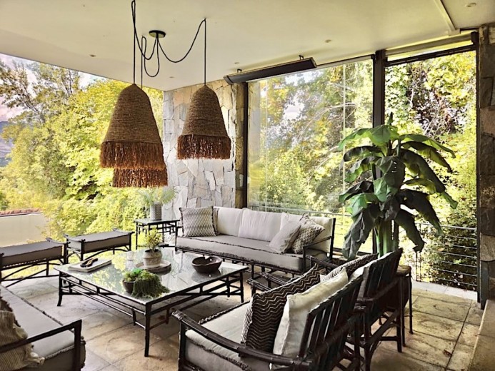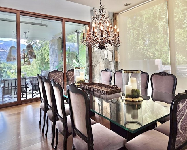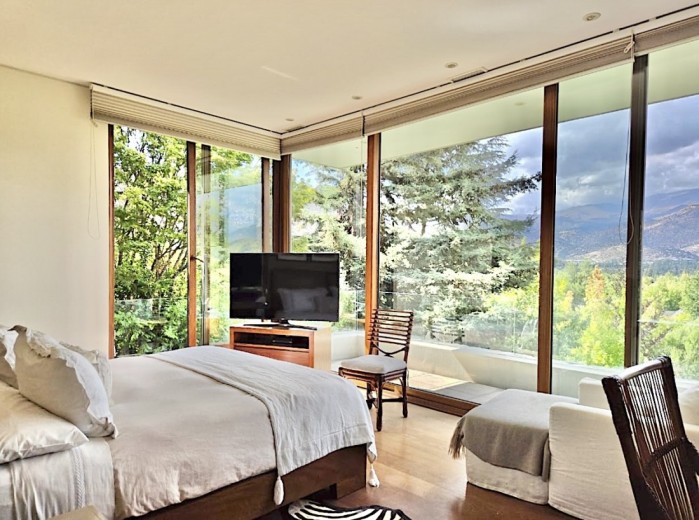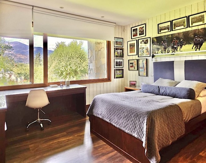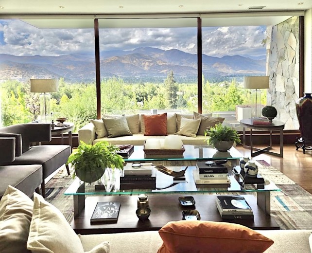 Ubicada en el exclusivo sector Golf de Manquehue, en La Dehesa, esta propiedad se emplaza en un entorno residencial consolidado y muy tranquilo. Cercana a reconocidos colegios como Santiago College, Colegio Huinganal, Mayflower School y Nido de Águilas, además de centros comerciales, servicios y excelente conectividad. Una casa estilo mediterránea, con un espectacular y amplio hall de entrada, living con doble altura y una increíble vista al oriente y comedor con salida a una exquisita terraza también con espectacular vista. Cuenta con cocina, de muy buen tamaño, con un cómodo mesón central, comedor de diario, despensa y una escalera que une al sector donde están los dormitorios de servicio. Desde el hall de entrada también se accede a una sala de estar con espectacular vista al oriente, al baño de visitas y al dormitorio principal, que cuenta con dos amplios walking closet y armarios de pared y un exquisito baño con jacuzzi, ducha y vanitorio doble. En este mismo sector hay una habitación escritorio. Bajando al siguiente nivel, nos encontramos con un hermoso jardín interior, tres amplios dormitorios en suite, uno de los cuales tiene salida al jardín, donde está la piscina. Una amplia sala de estar con un sector de estudio, un baño de visitas, y otra sala de estar de buen tamaño. También hay un amplio gimnasio, con vista al jardín interior. En este piso se encuentran los dos dormitorios de servicio, con baño, un sector de bodega y sala de caldera y electricidad. La casa además tiene un baño de jardinero en el exterior. Todas las ventanas son de termopanel con lámina antirobo, la casa cuenta con un sistema de aspiración centralizado, cámaras de seguridad, rollers automáticos y la caldera funciona a petróleo y parafina. Hermoso piso de madera boliviana. Los ductos de aire acondicionado en obra, listos para instalar.