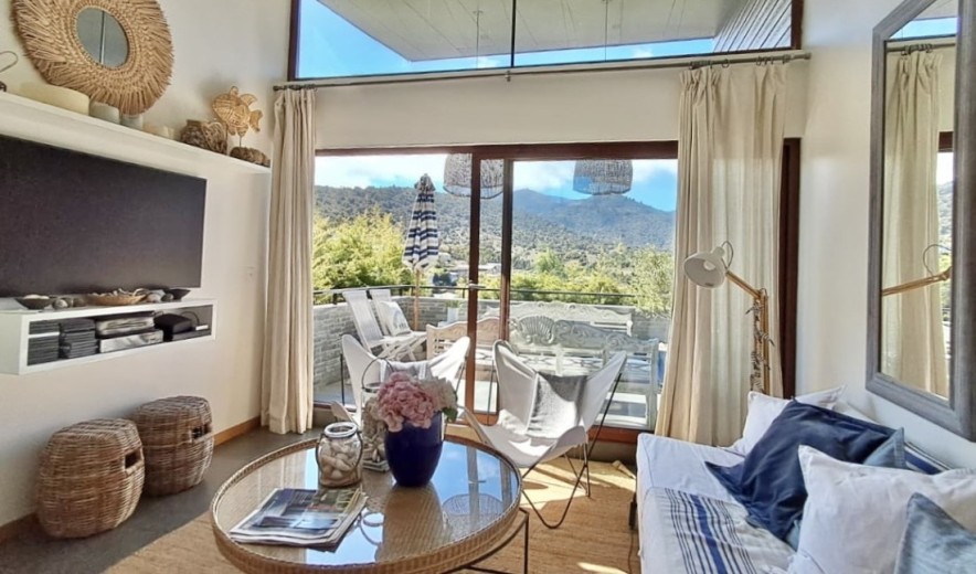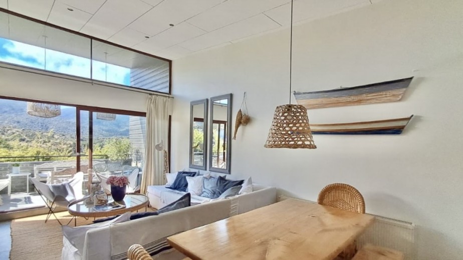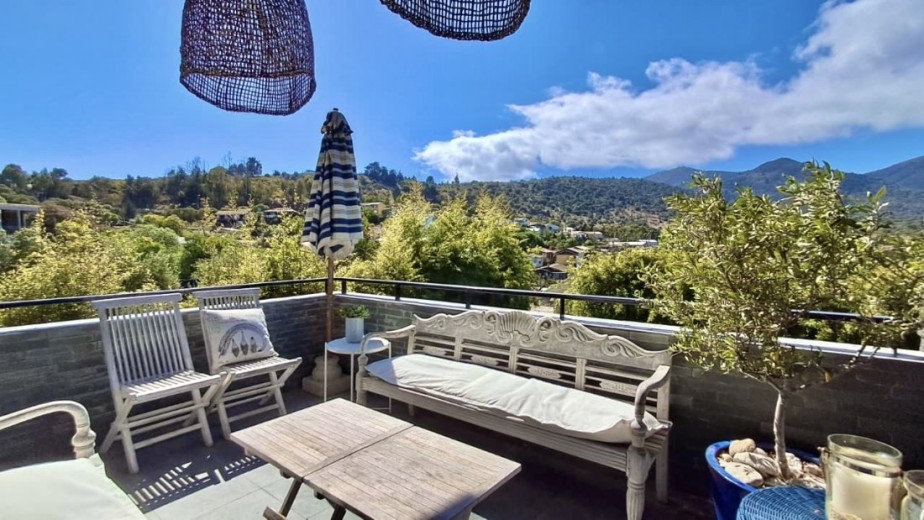 Ubicado en muy buen condominio privado, se encuentra este cómodo, luminoso y práctico departamento, a pasos de restaurantes, cafeterías, minimarkets y por supuesto de las playas de Cachagua: Las Cujas y playa grande, además de la mítica Plaza de los Burros. Cuenta con living comedor con acceso a una linda terraza con preciosas vistas a los cerros colindante hacia el norte, con cocina integrada, dos dormitorios que comparten un baño y el dormitorio principal en suite con esa preciosa vista. El condominio cuenta con áreas verdes, gran piscina y lavandería, y conserje 6 días de la semana.